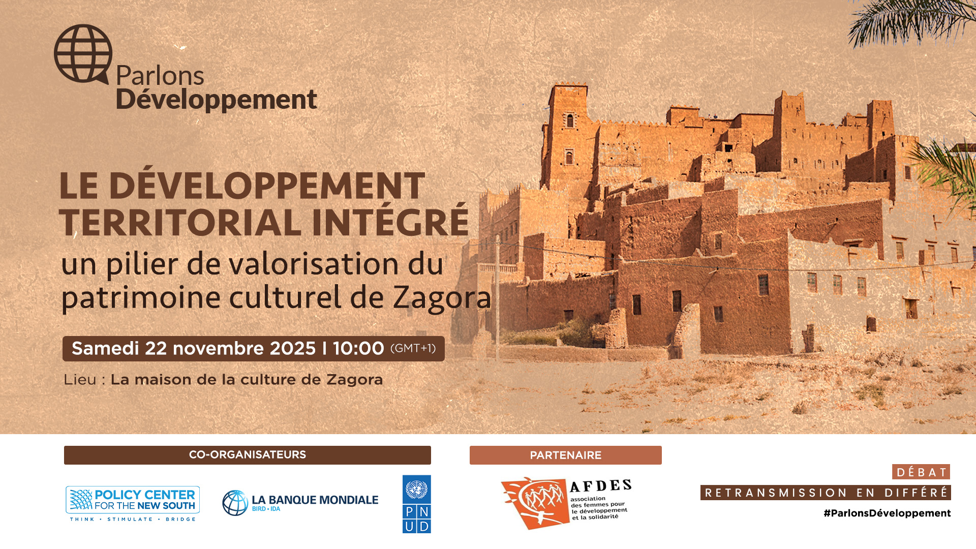 Depuis 2021, le Policy Center for the New South, le Programme des Nations Unies pour le développement (PNUD) et la Banque mondiale portent ensemble l’initiative « Parlons développement » : une série de réflexions collectives autour des enjeux du développement durable au Maroc. Cette initiative vise à interroger les grandes mutations en cours et leur impact sur l’agenda des Objectifs de Développement Durable (ODD), en rapprochant les débats stratégiques des réalités vécues sur le terrain.