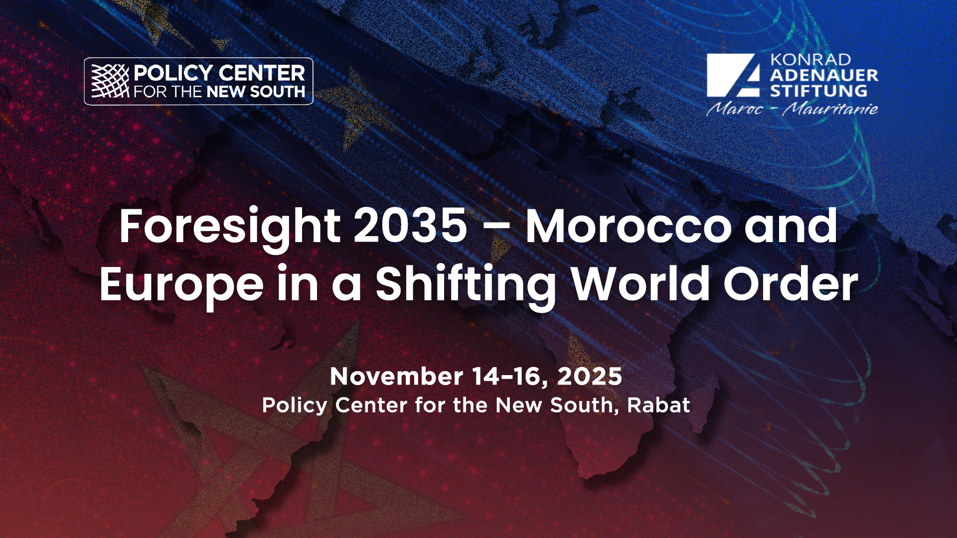 The Policy Center for the New South and the Konrad Adenauer Stiftung Morocco are co-organizing Foresight 2035 – Morocco and Europe in a Shifting World Order, a 2.5-day national-level policy simulation bringing together 25 young Moroccan professionals from policy, research, and civil society.