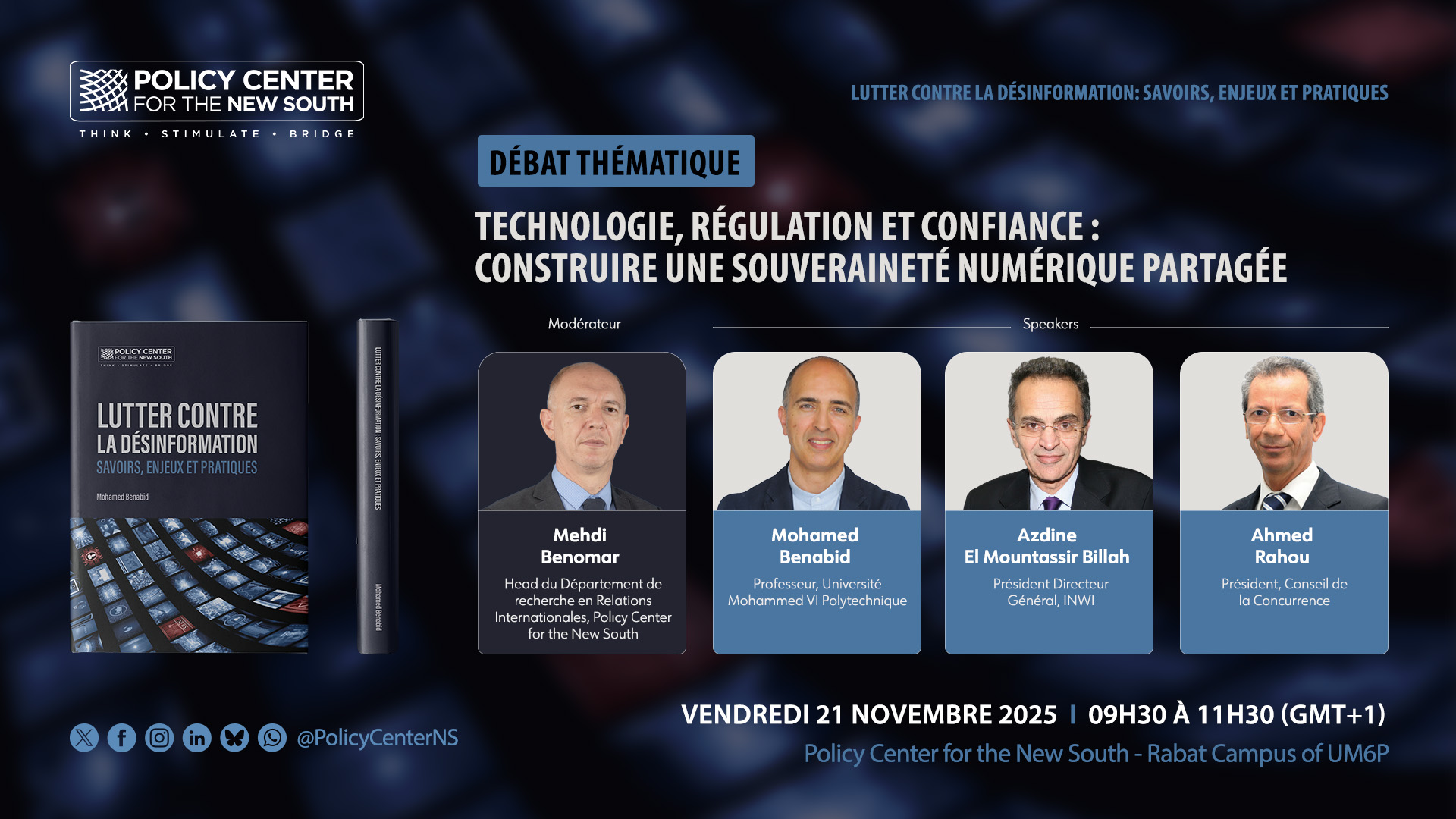Le Policy Center for the New South (PCNS) a le plaisir d’accueillir une présentation de l’ouvrage intitulé « Lutter contre la désinformation : savoirs, pratiques et enjeux » du Professeur Mohamed Benabid.