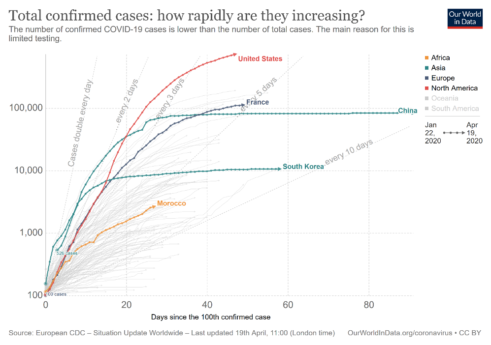 En causant la mort de plus de 162 000 personnes sur les 2,3 millions d’infectés, le taux global de létalité du COVID-19 avoisine désormais les 7%. Bien que le taux de létalité du COVID-19 demeure relativement plus faible que celui d’autres maladies infectieuses, telles Ebola, l’agrégation des cas d’infection exerce une pression non-négligeable sur les systèmes de santé et exacerbe les inégalités sanitaires inter- et intra-étatiques. Les taux de létalité diffèrent donc considérablement d’un pays à l’autre, reflétant les capacités de dépistage et de traitement propres à chaque système de santé, ainsi que l’efficacité des politiques de distanciation sociale mises en place par les exécutifs.