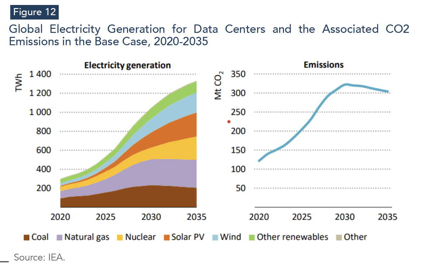 AI is translating into measurable electricity demand growth through data centers, with load profiles and system implications that differ from earlier waves of digitalization. The novelty is not that data centers exist, but that AI-driven infrastructure is now being deployed at a scale and pace that transforms data-center electricity demand from a secondary load into a material contributor to incremental electricity demand growth, particularly in advanced economies and China. This trend has direct implications for power-system planning, investment signals and the short-term trajectory of power-sector emissions (IEA, 2025b; Deloitte, 2025).