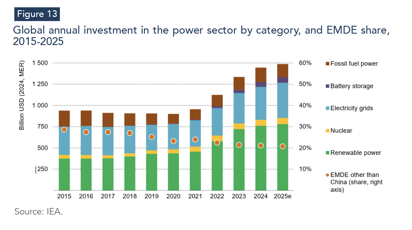 Finally, the 2025–2026 outlook highlights a structural asymmetry for emerging and developing economies. While many benefit from lower fuel-price baselines, they face disproportionately high exposure to electricity-system constraints, financing costs, and import dependence for key equipment and refined materials. In this context, the macroeconomic question is not whether the transition proceeds, but how unevenly its costs, vulnerabilities, and strategic advantages are distributed. Addressing this challenge requires shifting policy focus from energy affordability—driven by lower fuel prices—toward energy competitiveness, anchored in system capacity, where grids, reliability, and industrial resilience become the primary determinants of growth and stability in the electrified economy.