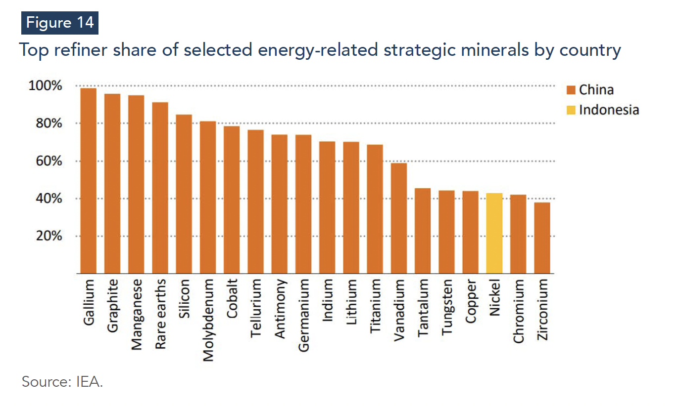 China’s role illustrates the scale of exposure. The IEA reports that China is the dominant refiner for 19 out of 20 energy-related strategic minerals and holds an average refining share of around 70% (IEA, 2025a). In concentrated markets, disruptions, whether triggered by export restrictions, extreme weather, technical failures, or sanctions, can propagate rapidly across multiple industrial chains simultaneously, affecting renewable deployment, grid expansion, battery manufacturing, and AI hardware supply chains. Trade measures can operate as effective chokepoints because substitution options are limited in the short run and alternative refining capacity takes time to develop.